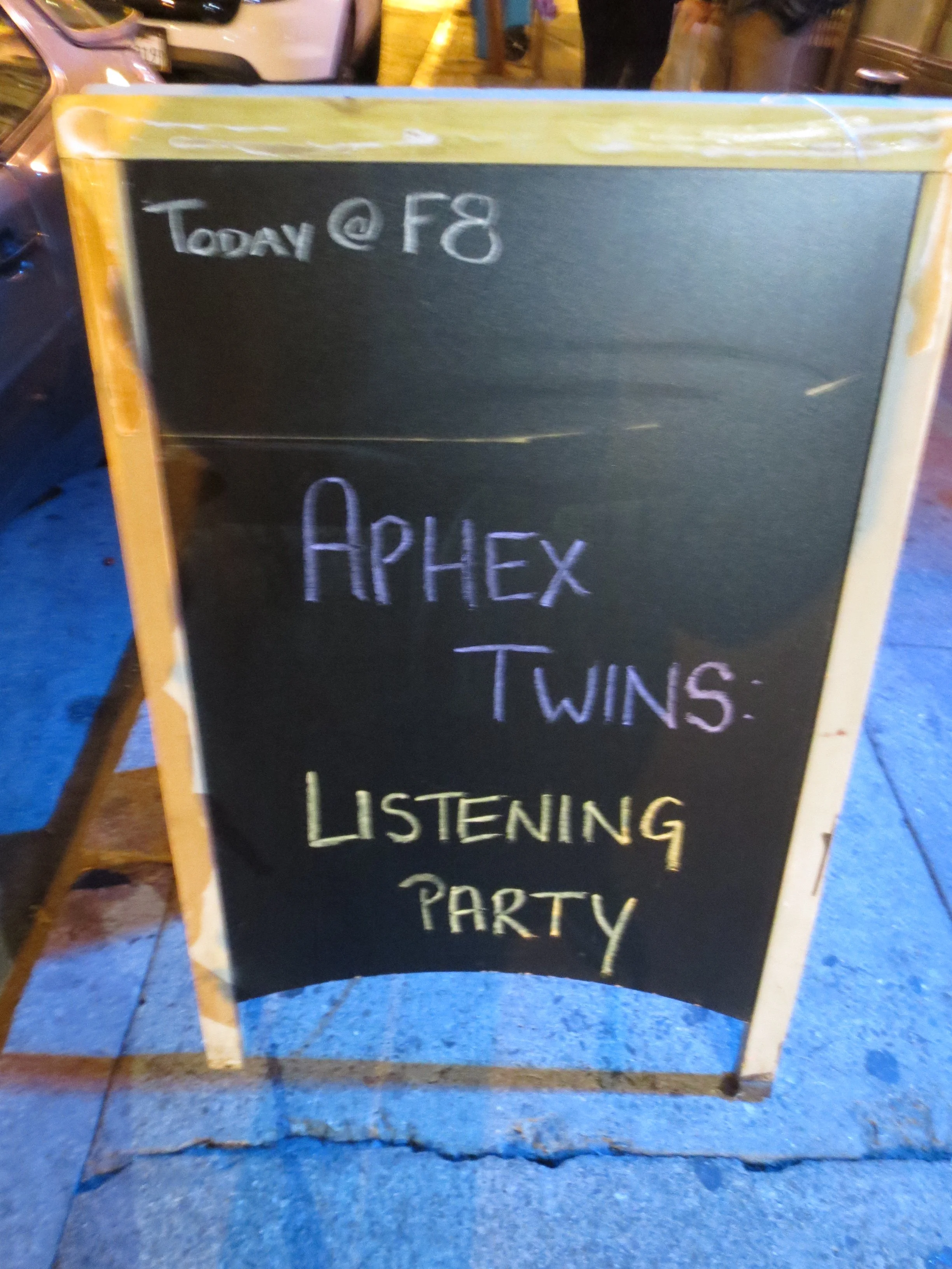 Sweguno DJ set at F8 in San Francisco. Once again the theme of the evening was built around the then ongoing Aphex Twin soundcloud uploads.
