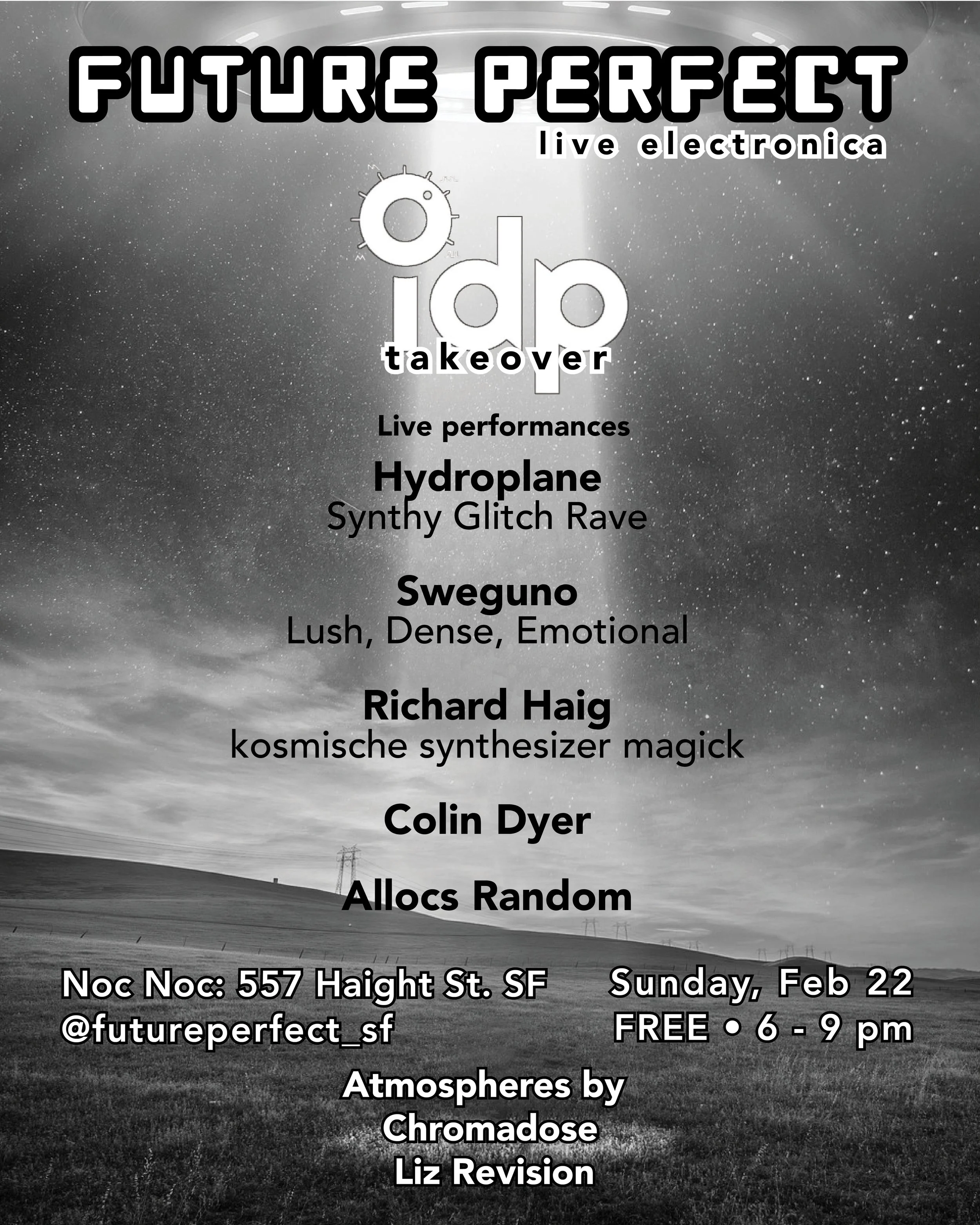 Live set of Sweguno material performed at Noc Noc in San Francisco for the ‘IDP takeover’ of the ‘Future Perfect‘ monthly electronic music event. The first 3 tracks were unfinished/unreleased, and were in a similar state to when I played them back in October ‘25. The fourth track was a cover of Tears For Fears’ ‘Head Over Heels‘ which I debuted at this event. The final track was ‘Never Leave Today‘ from ‘No Right Or Wrong Way Forward‘. It went very well overall and the incredibly positive audience reaction was really touching for me. ‘Noc Noc’ was a very interesting space as well, absolutely brimming with character!