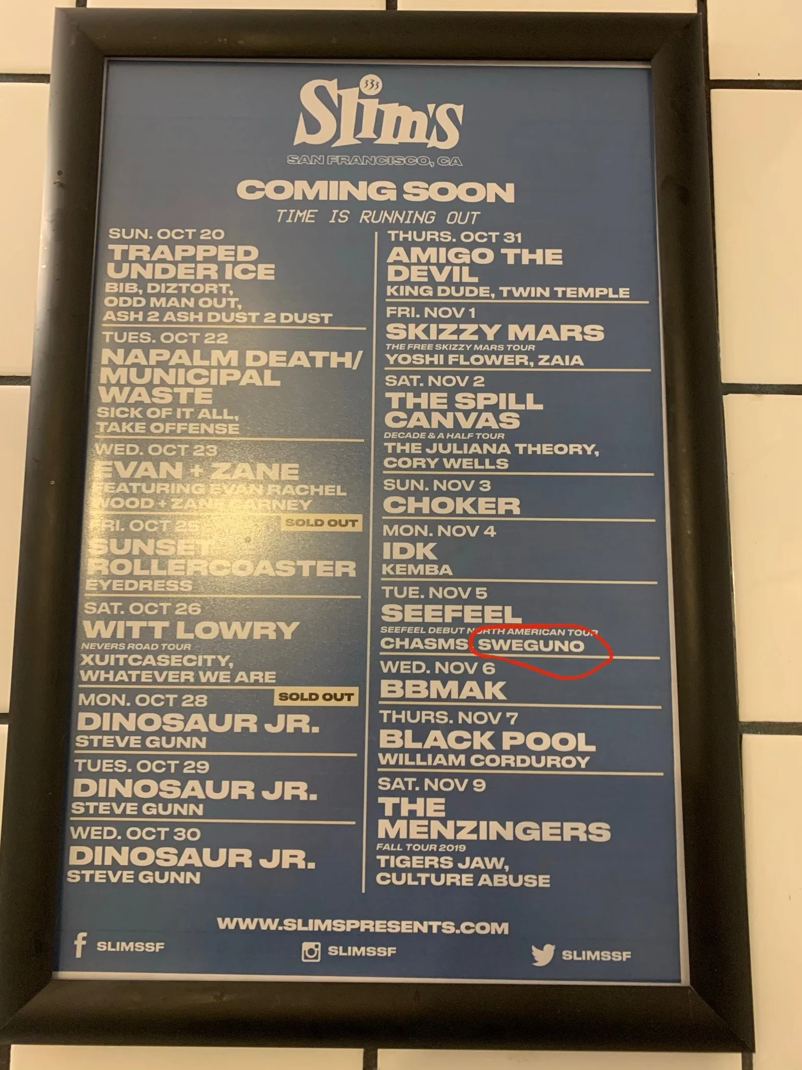 First live Sweguno set of original material, performed for ‘IDP 008’ at Underground SF in San Francisco. It was a bit of a mess but held together just enough to be invited back later.